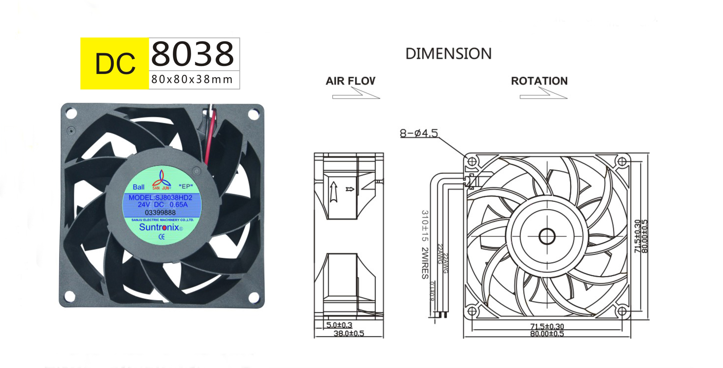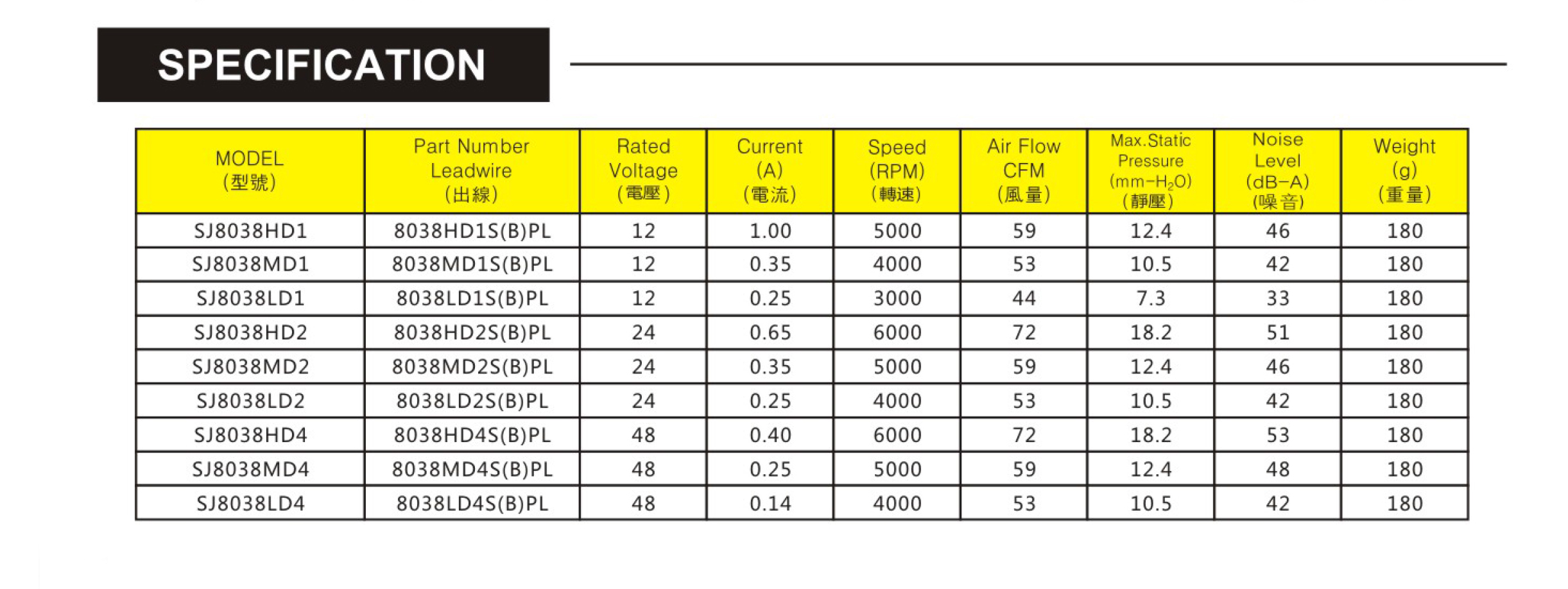 臺灣三巨SJ8038HD2-DC軸流風扇